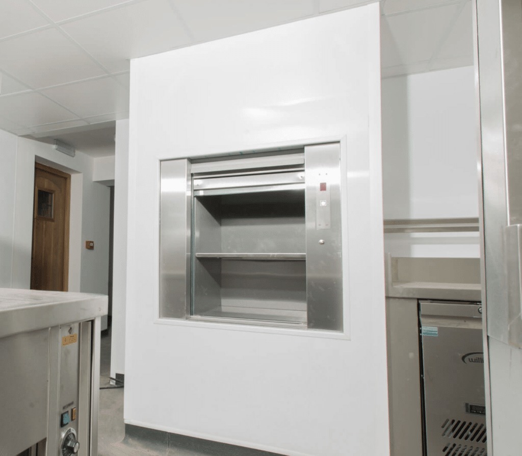 Utiliza o sistema convencional de tração através de moto-redutor e cabos de aço. Podendo atender de 50 kg até 5000 kg de carga de tração podendo ser desenvolvidos com casa de maquinas ou sem casa de maquinas.